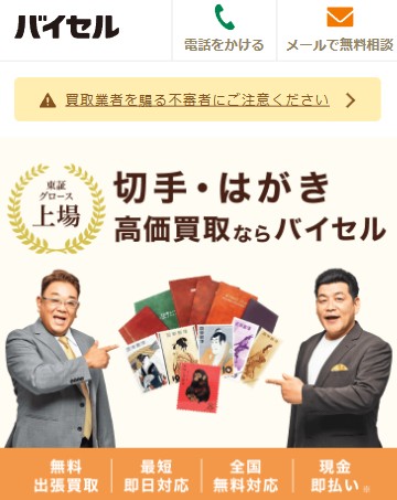 バイセルは、切手買取店の中で唯一の上場企業です。