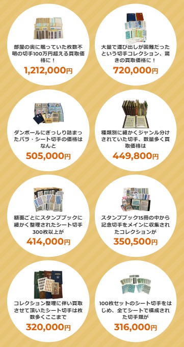 | 買取対象 | 消印付き、バラ切手、シミ・汚れ、日焼け、折れている、台紙に貼ってある。 ※傷・汚れがあっても査定対象 |