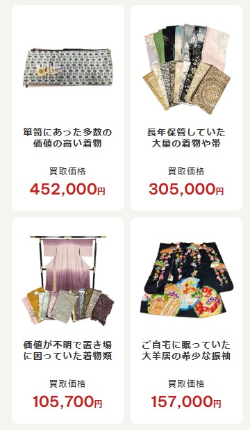 どんな状態の着物でも査定可能なので、古い着物を早く手放したい人、他社の査定額が低すぎると感じている人からも選ばれている着物買取業者です。